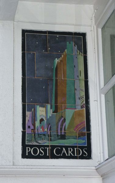 Glazed tile advertisments on the front of WH Smith in Great Malvern.