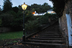 Lighting up time on the '99 steps' in Rosebank Gardens, Malvern.