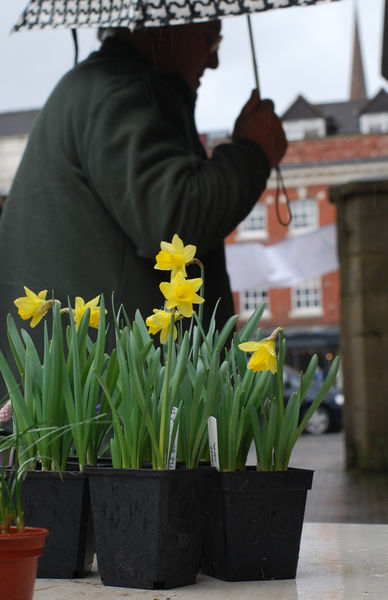 These daffodils huddle up against the weather outside the Ledbury Country Market at St Katherine's Hall in Ledbury.