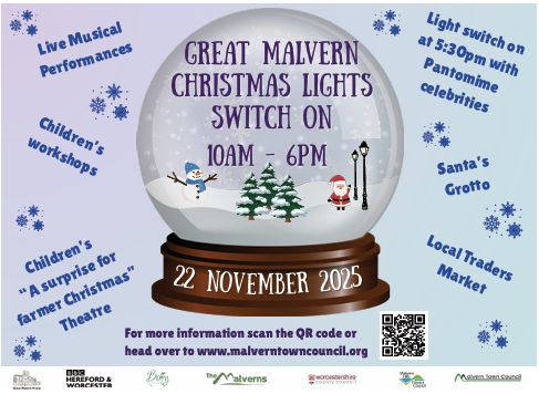 Join in on Saturday 22nd November from 10am to 6pm for the annual Great Malvern Christmas Lights Switch On.